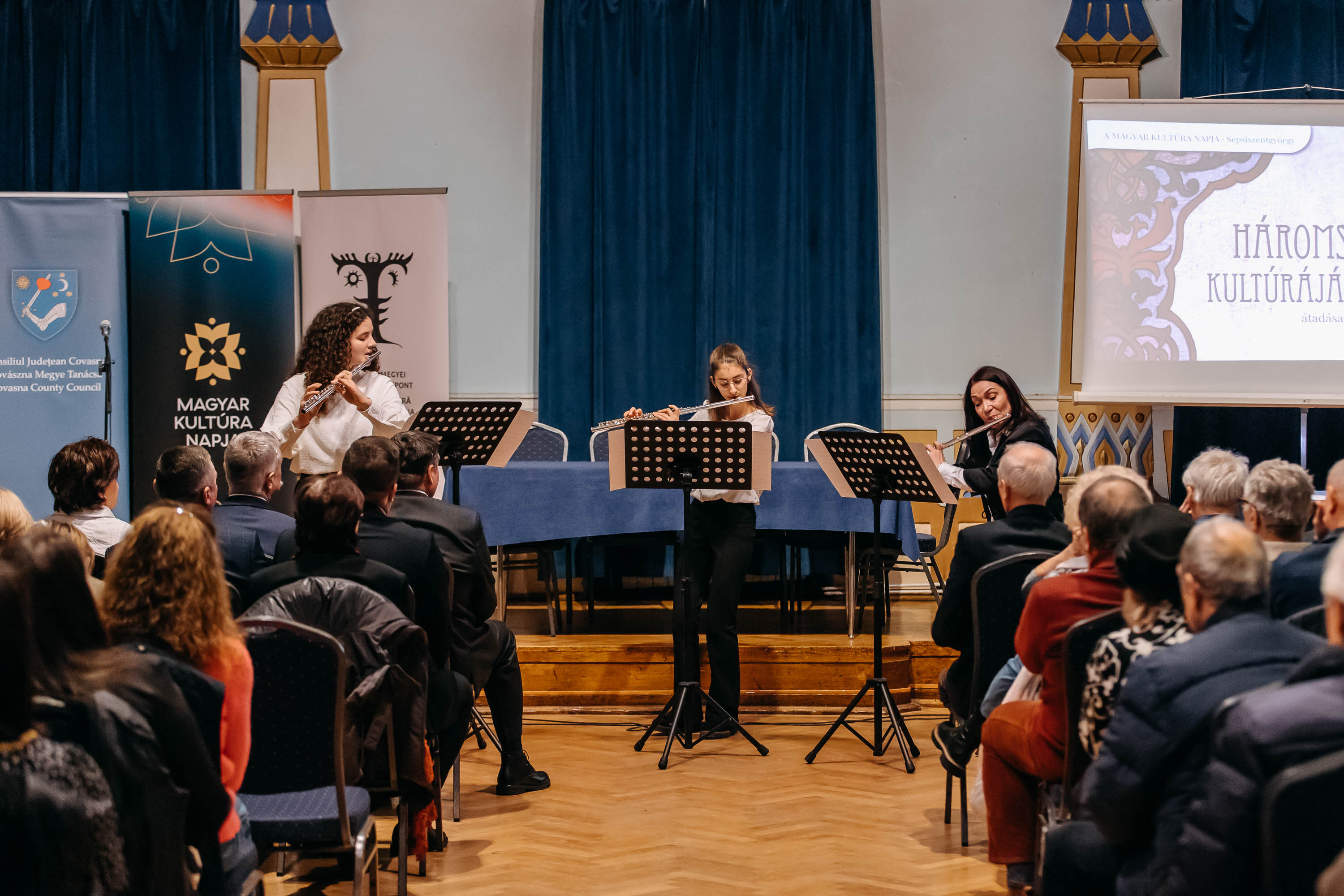 Momentul artistic al evenimentului a fost susținut de Trio-ul de flaute „Time for Flute” al Liceului de Arte „Plugor Sándor” din Sfântu Gheorghe, format din Ivanitzki Krisztina (clasa a X-a), Tóth-Kovács Iringó (clasa a IX-a), sub coordonarea profesoarei Császár Katalin. Programul muzical a inclus Marșul Rákóczi de Bihari János – Hector Berlioz și Trio pentru flaute de Zempléni László.